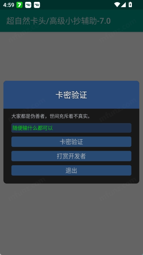 验证界面无需真实卡密,任意字符输入均可通过验证