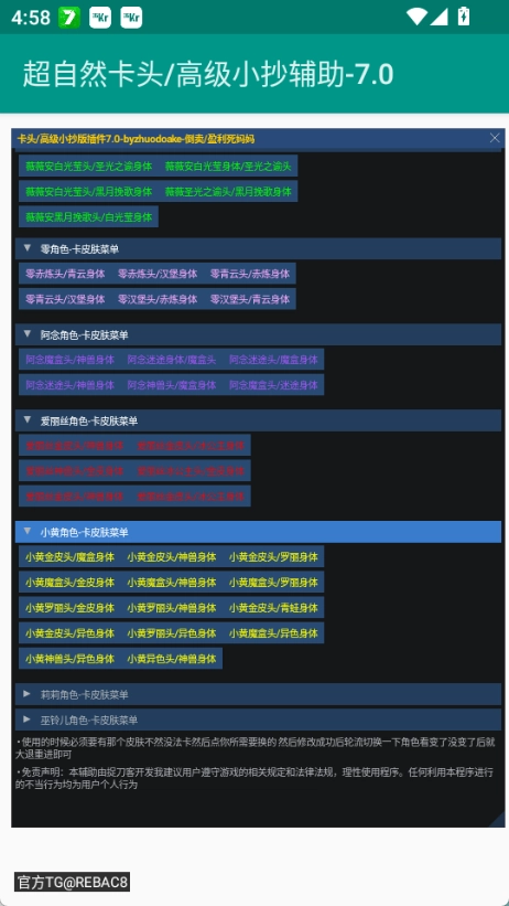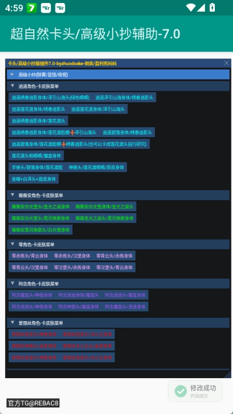 超自然卡头插件由开发者zhuodaoke精心制作,专为提升超自然行动游戏体验打造。这款工具无需卡密即可激活,提供高级小抄功能、导航显馆、小地图除雾及地图夜视等核心能力。玩家可解锁逍遥、薇薇安、阿念、爱丽丝、小黄、莉莉、巫铃儿等角色的专属皮肤菜单,实现个性化角色造型。其智能环境搭建技术自动处理ROOT授权与服务连接,移动端触屏操作流畅便捷。内置安全防护机制有效避免账号异常,让玩家在突破游戏限制的同时,免费获取限定外观资源,享受高清3D皮肤预览与特效叠加的独特乐趣。