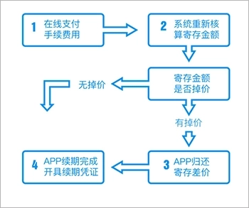 2、押呗系统会智能判断用户是否需要归还续期差价。该系统内置二手数码行情大数据库,能够智能分析产品未来的价格下跌趋势。当用户在续期期间,其寄存的产品出现价格下跌情况时,就需要提前归还寄存本金,这在APP内被简称为“续期差价”。