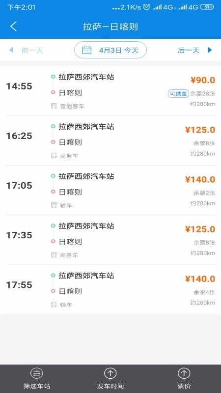 2、用户可清楚看到车票售价、发车时间、日期等信息