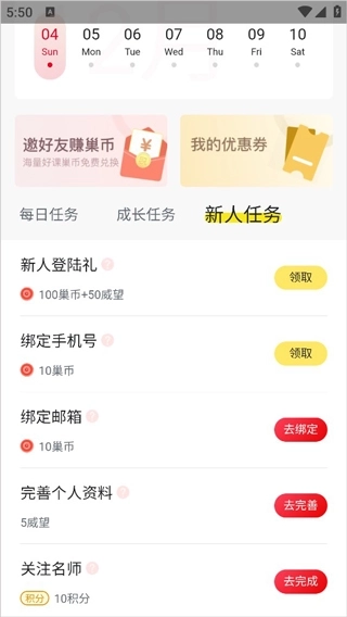 2、其次,可以在“福利中心”中,找到新人任务,通过完善个人资料,领取相应的巢币奖励。