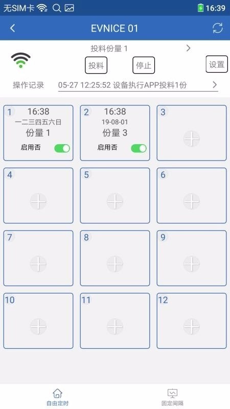 3、在固定间隔页面,就能自行设定投料的分量和时间