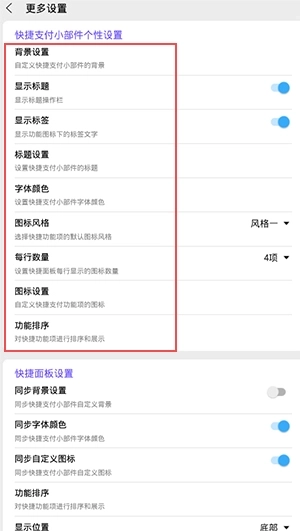 2、在快捷支付小部件设置里,可以设置隐藏图标、触感反馈、支付宝口令、主题风格等;