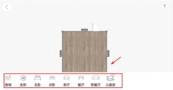 5、完成后,点击【智能】选项来选择房间的用途;