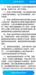 2、进入预约申请页面,查看相关信息后,点击下方的“已阅读并同意申请须知”选项进入下一步。