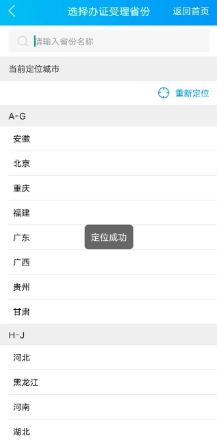 3、选择办证受理省份;