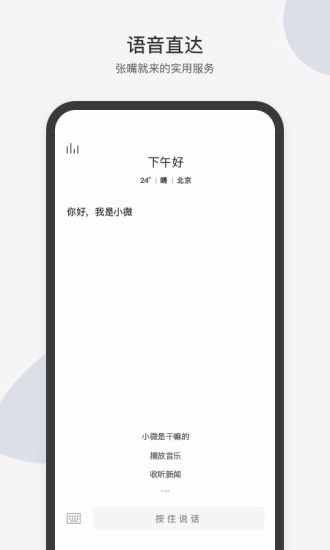 腾讯小微app是一款智能语音助手软件,依托先进的高科技识别技术,能让用户通过语音指令操控手机及家中各类智能家居设备,无需动手,仅用语音就能轻松实现控制,操作简单便捷。这款app为用户带来了诸多便利,通过语音即可完成天气预报查询、收听广播、语音对话等多种功能,既实用又方便,堪称用户生活中的得力助手。此外,它还支持接入音箱、电视、玩具、投影仪、汽车等各类设备,助力用户打造全方位的智能生活,让生活中的各项操作都能通过语音完成,体验真正的智能生活场景。而且,该应用的使用方法十分简单,若你有相关需求,不妨下载体验一番!