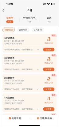 1、用户进入“我的”页面后,找到并点击“优惠券”选项,在该页面中挑选自己想使用的优惠券,然后点击“去使用”按钮即可。