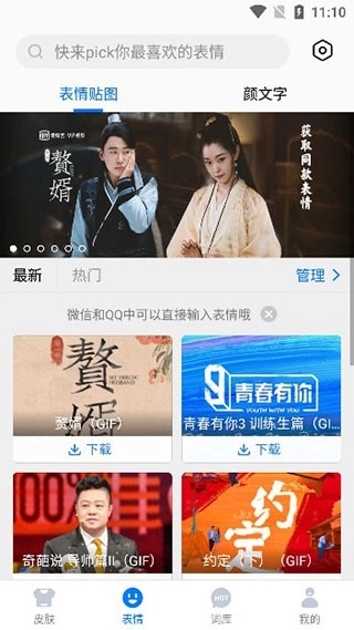 2、在皮肤界面,用户可以看到当前最热门的皮肤,使用这些皮肤能让你的输入界面更美观。