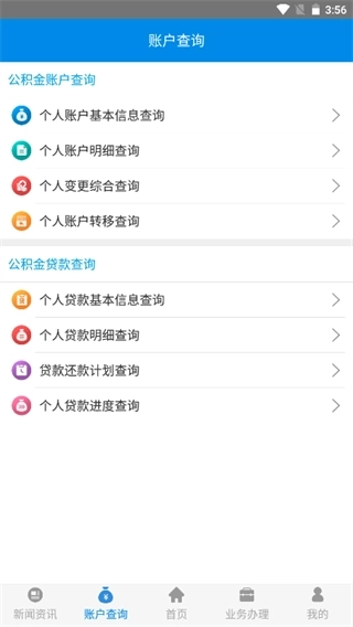 3、点击账户查询能够看到个人公积金信息、与公积金贷款。