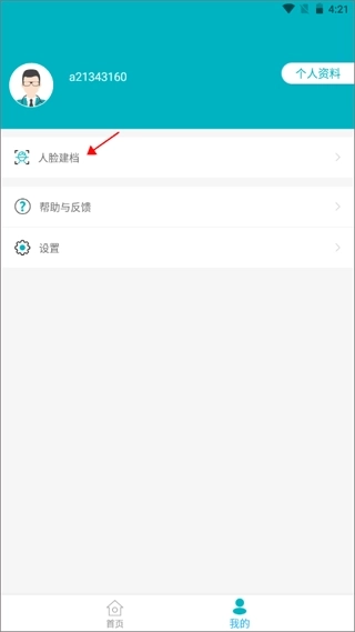 1、先注册并登录软件账号,接着从首页切换至【我的】界面,然后选择界面上方的“人脸建档”选项。