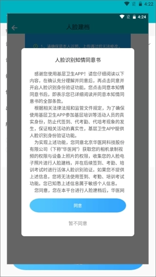 4、页面弹出一个人脸识别知情书,点击同意就可以进入下一步了。