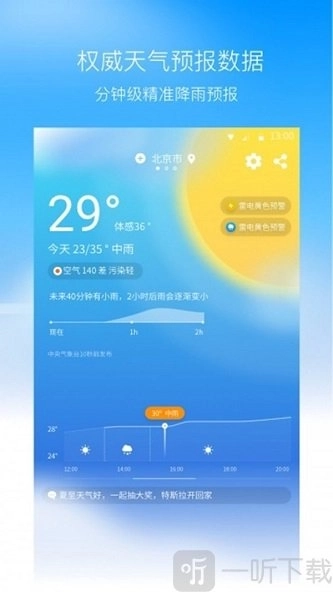 2. 精准及时的天气推送服务,短时降水提醒、今明两日天气预报以及灾害预警信息,都能在第一时间送达用户。
