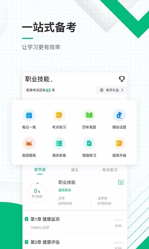 4、为你提供丰富的健康师教材知识点,章节内容视频精讲;