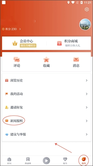 1、打开软件,登录账号后,选择“我的”,点击进入“新闻报料”模块。