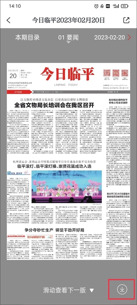 若想查看不同时期的电子报,可点击右侧的日期按钮;要是想查看另一版的临平新闻报,则向下滑动即可。