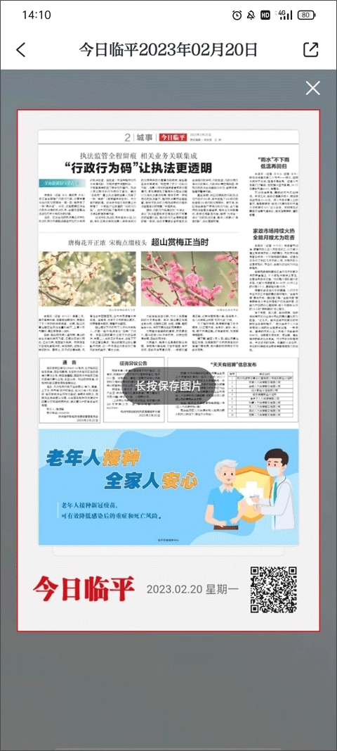 如果想要将新闻报下载到手机上,只需点击右下角的下载按钮,然后长按图片进行保存即可。