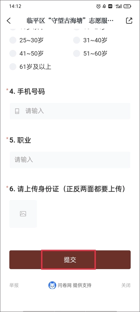 2、先填写个人的志愿者申请表,接着上传本人的身份证证件,最后点击提交按钮即可完成操作。