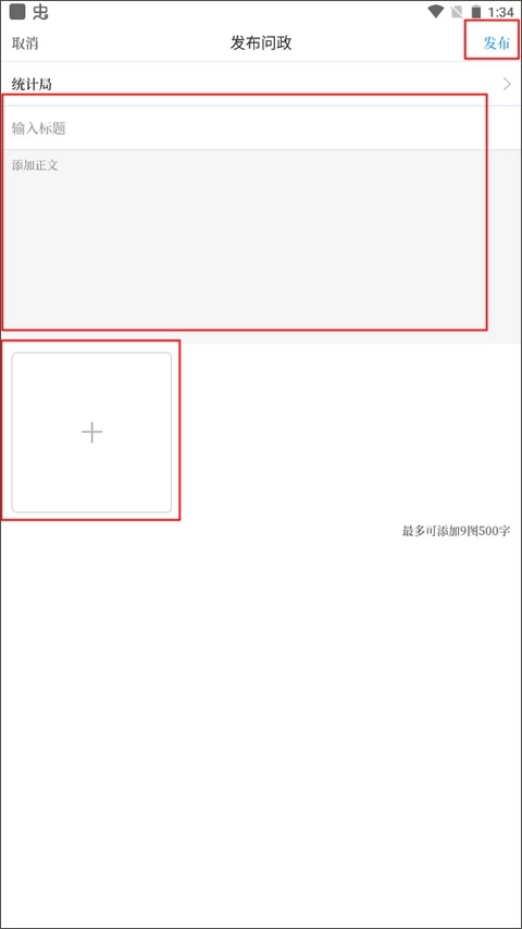 2、输入标题和具体的正文内容,上传相对应的图片,最后点击发布按钮即可问政成功。