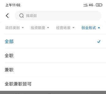 3、拥有项目类别、投资额度、经营场景、创业形式四大模块