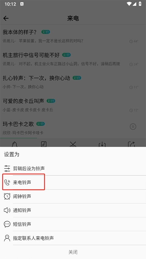 3、点击设置为来电铃声就可以了,当然你也能把这个铃声设置成闹钟、通知或者短信的铃声