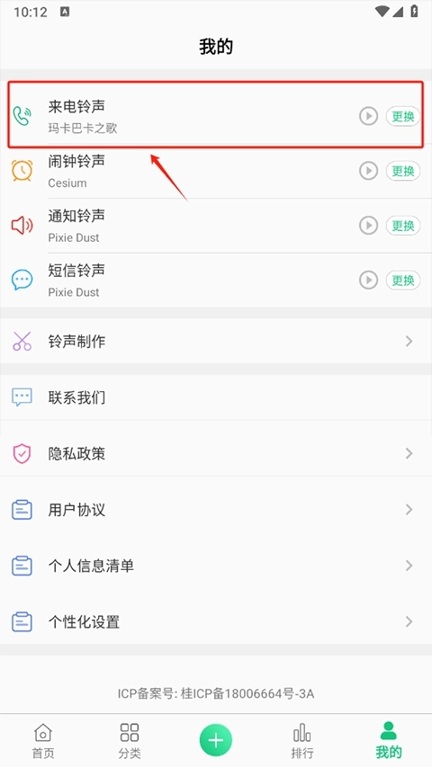 1、在应用首页挑选你所需的铃声类别,比如来电铃声