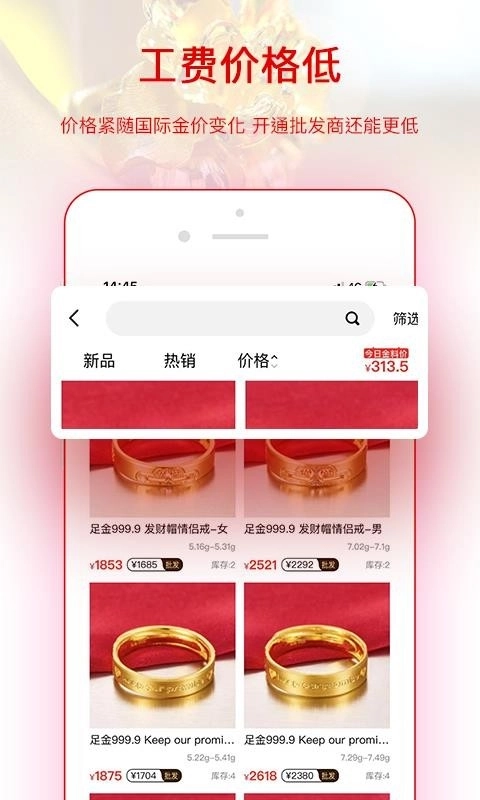 工费低,金饰工费低,同时金价实时跟进国际金价,让您购买的价格实时与国际接轨;