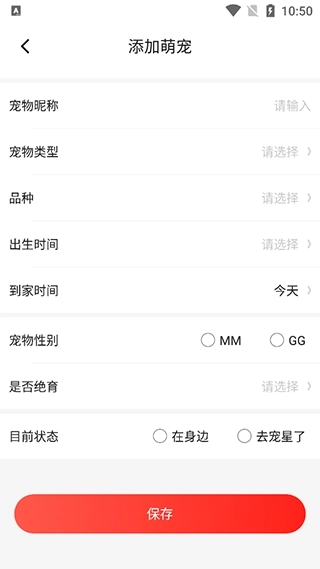 2、添加完成后,可根据页面显示功能对爱宠的信息进行补充;