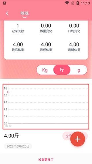 4、添加完成后,查看到自己爱宠的体重变化,可时刻关注到宠物健康。