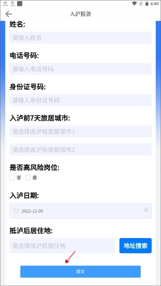 (2)填写自己的入泸七天前的行程记录以及身份证信息,最后点击提交即可。