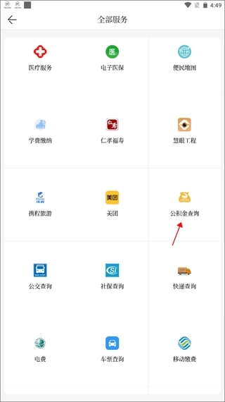 (2)这里会显示app提供的所有服务,往下翻选择“公积金查询”。