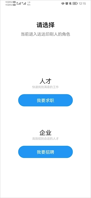 1、进入达达印刷人app后,首先选择求职或招聘登录