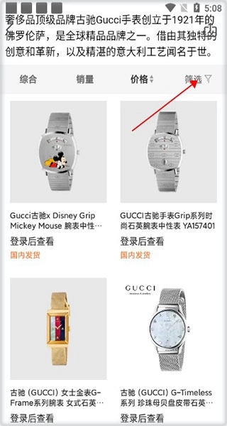 2、知道自己想要什么物品后进行挑选,点击筛选;