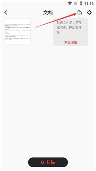 1、打开极简扫描app,找到需要转成pdf格式的文档,点击进入该文档页面后,再点击界面右上角的按钮。