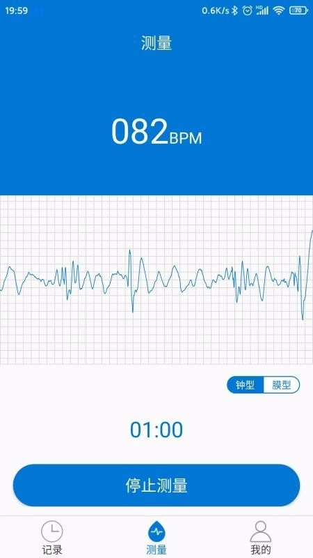 2、可自定义测量时长、选择测量类型,然后在手机中整理测量数据;