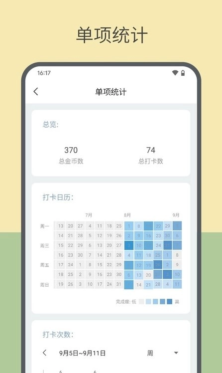 呈现出清晰的打卡日历,打卡总次数可以快速查看。