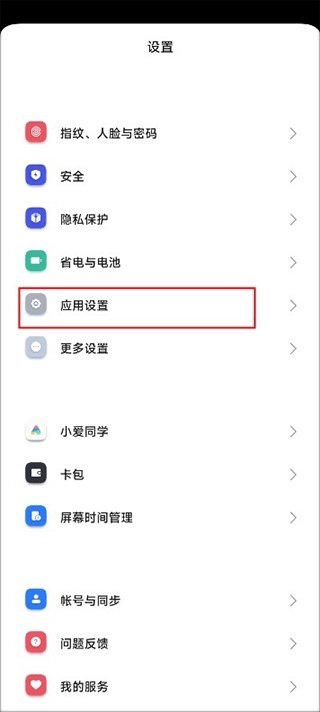 我们先打开手机里的设置,进入应用设置界面。