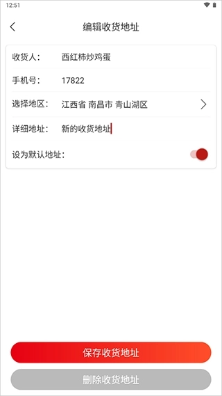 3、然后在地址上面直接修改即可,手机号、用户名也可以修改的,修改完成后保存即可