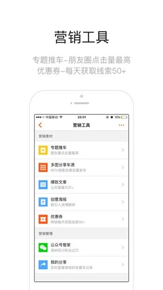 2、微店功能:提供微店功能,帮助车商搭建自己的微店平台,展示产品信息,吸引潜在客户,增加销售机会。