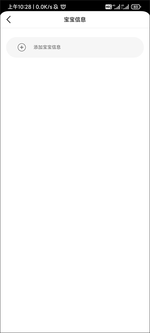 进入宝宝信息界面后,能看到当前我的账号还未绑定宝宝,此时点击“添加宝宝信息”,即可进入填写界面。
