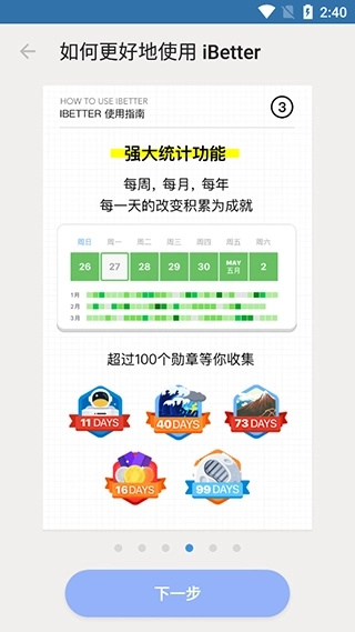 iBetter app提供100个超酷勋章,供你解锁,还能分享你的里程碑给朋友们。
