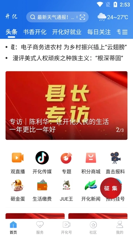 1、开化好地方是开化传媒集团开发并运营的一款新闻客户端;