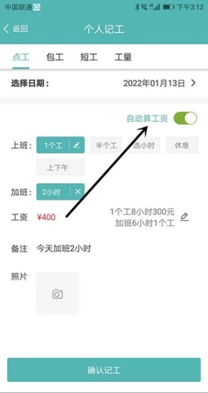 2、然后选择记工的日期