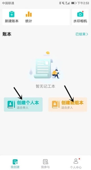 1、选择与自身身份匹配的账本创建,个人账本适用于个人使用,班组账本则适合多人共同使用。