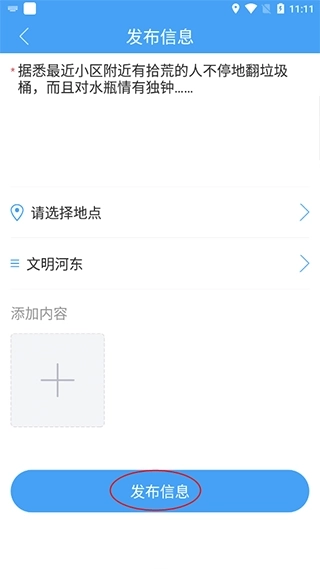 3、输入需要发布的内容,也能添加图片或者视频,最后点击发布信息即可完成操作。