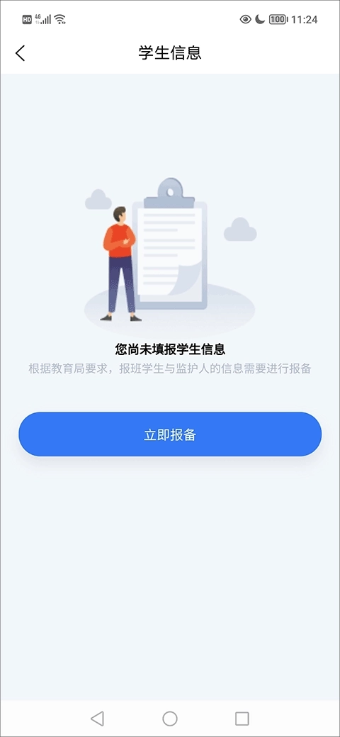 2、然后,在“学生信息”界面找到并点击“立即报备”按键;