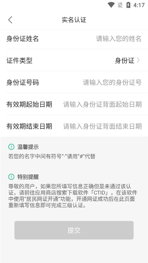 4、输入姓名、身份证号、身份证起始和结束日期等详细信息;