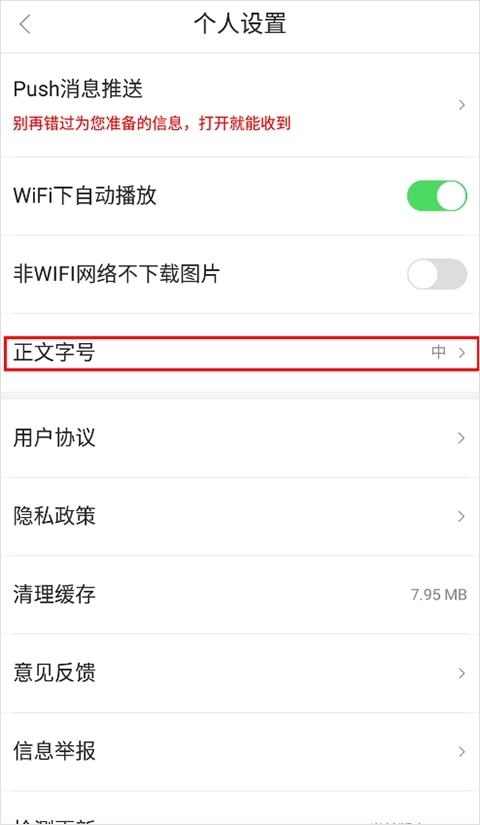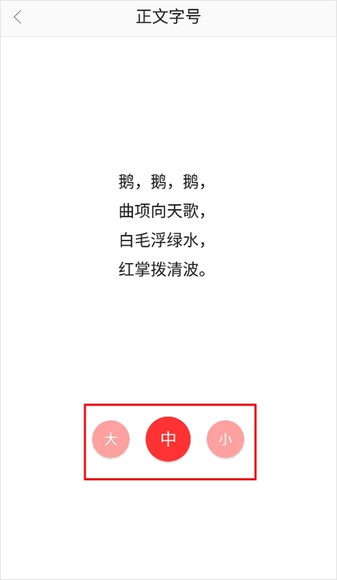 4、在这里就能完成设置操作,可选择小、中、大三种规格。