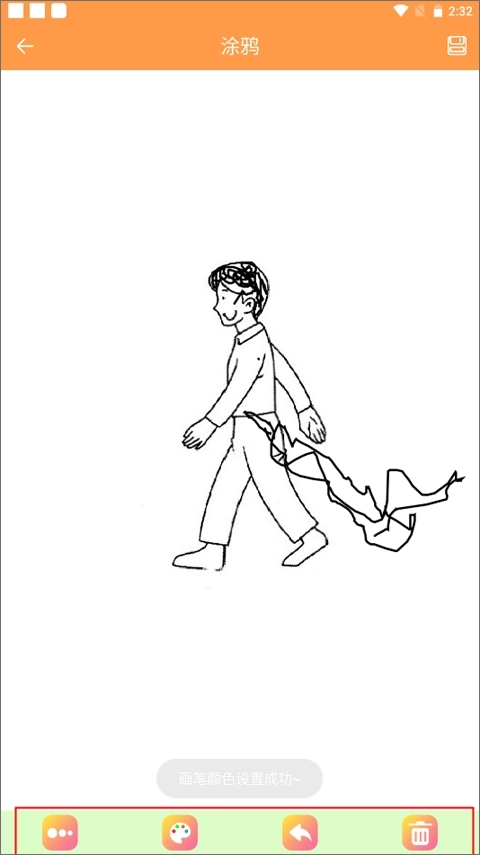 选好后点击进入创作页面,页面下方的字体大小调整、画笔颜色选择、返回与删除等功能,均是用于创作涂鸦作品的工具。