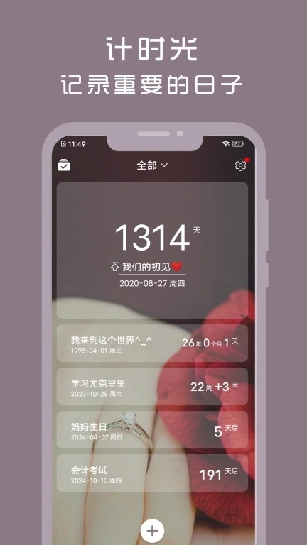 计岁月app是一款用于计时、记录与纪念的手机应用,核心功能是为用户提供记录工具,帮助用户留存重要日期,支持随时查询,还能对关键日期事件进行智能提醒,助力用户高效规划每日生活;计岁月安卓版则为用户打造了专业的记录平台,可根据用户设定的重要日期进行智能处理。